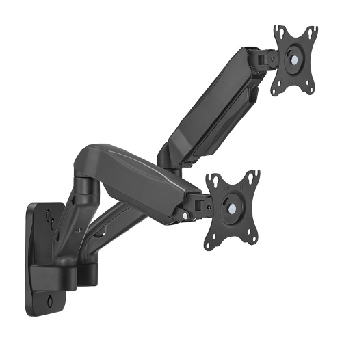 Dual monitor 17″-32″ spring-assisted wall-mounted arm, blackDurable steel and aluminum construction supports two 17”-32” monitors up to 9kg. Wall mount. With spring folding arms.
