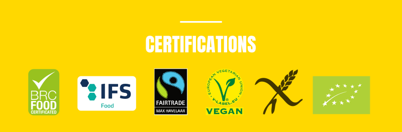 – Certification: BRC, FAIRTRADE, IFS, KOSHER