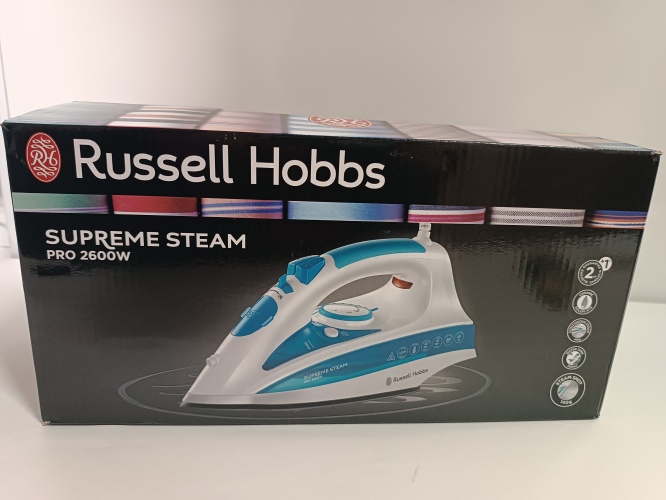 Ecost Customer Return, Russell Hobbs Steam Iron Supreme Steam Pro (2600 watt, 140 g/min extra steam burst, ceramic soleplate, self-cleaning & spray water function, drip stop, vertical steam), Iron 20562-56