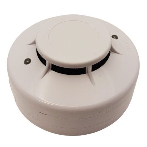 Smoke sensor, with base, for multiple-station system, two-wireFeatures:Smoke detector with a photoelectric camera that detects smoke early from any direction.The detector is designed for integration into multiple-station security system.The device operates at standard the two-wire connection allows for simple and reliable connection to the system.The base is designed for mounting onto electrical junction boxes without additional adapters.In standby mode, the detector’s operation indicator light flashes every 32 seconds.When smoke is detected, the red LED light lights up and a signal is transmitted to the security system alarm.Technical data:Type: photoelectric smoke detector.Sensitivity: 0.08 – 0.16 dB/m.Voltage: DC 9V (min.) – 35V (max.).Standby current: <80uA.Alarm current: <40mA.Operating current: max. permissible 60mA.Alarm indication: red LED on.Indicator cycle time: 32 sec.Operating temperature: 0°C~+50°C.Ceiling mounting.Dimensions: Ø99mm x 51mm.Weight: 147g.Color: white.Certificates: EN54-7.Warranty: 24 months.