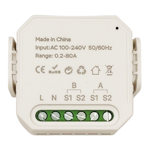 Technical specifications:Number of channels: 2.Measurement current: 0.2–80 A.Operating voltage: 100–240V AC.Frequency: 50/60 Hz.Energy measurement accuracy: ±2%.Wi-Fi frequency: 2.4 GHz.Wi-Fi standards: 802.11b/g/n.App: Tuya Smart / Smart Life (Android, iOS).Works with Amazon Alexa & Google Assistant.Reset button: yes.Indicator light: yes.Operating temperature: -10°C to +55°C.CT measurement aperture diameter: 10.5 mm.CT cable length: 0.7 m.Dimensions: 46 x 46 x 21.3 mm.